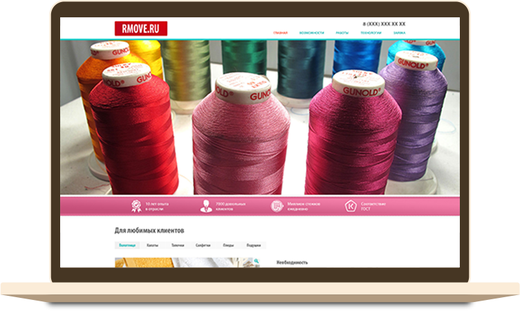 Разработка логотипа и лендинга для компании, которая занимается промышленной вышивкой.