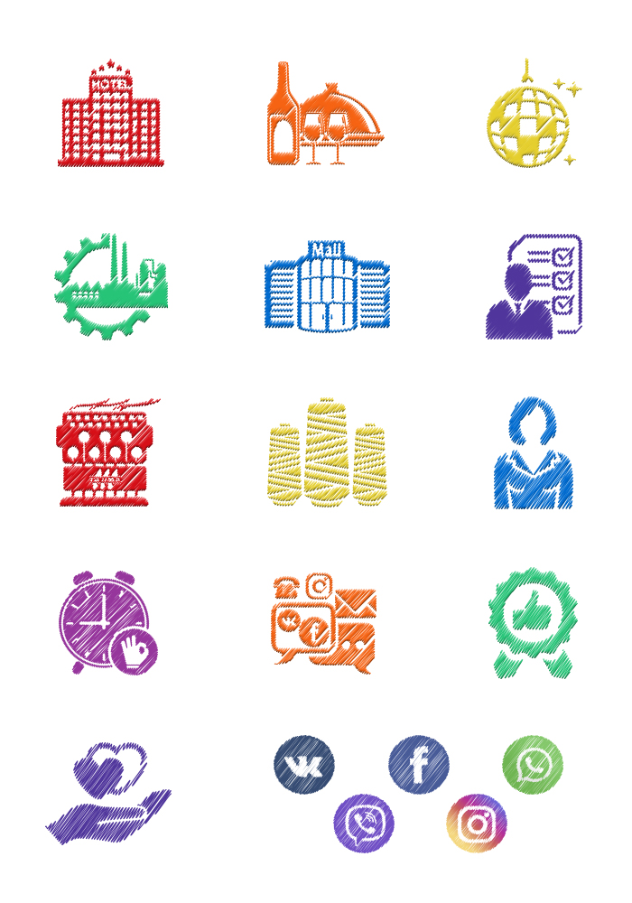 В ходе работы над посадочной страницей были отрисованы иконки и иллюстрации в виде вышивки.