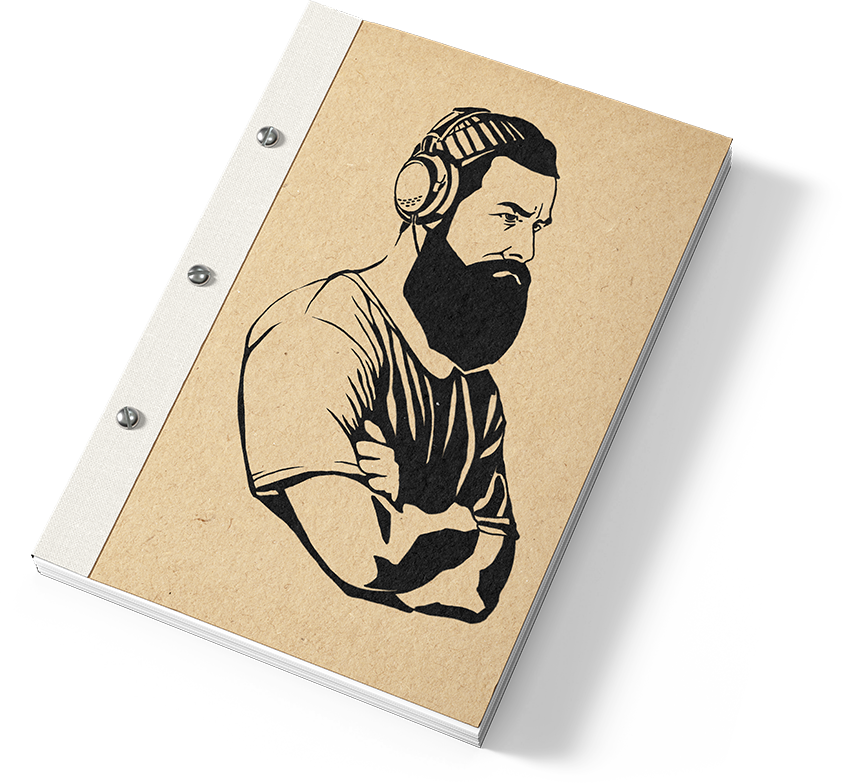 Логотип должен состоять из графического элемента и текста. Графический элемент должен быть выполнен в виде бородатого, брутального мужика, любящий музыку, возможно в очках. Шрифт для текстового элемента необходимо подобрать или нарисовать в ретро стиле Цветовая гамма логотипа должна быть монохромная (черный, серый, белый)