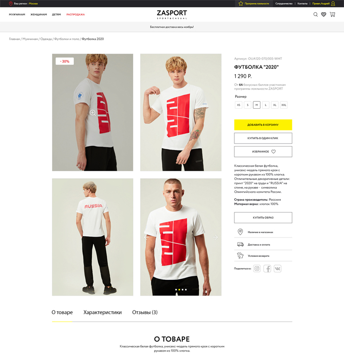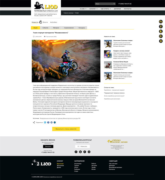 Веб-сайт спроектирован для российского бренда спортивной одежды, который является официальным экипировщиком Олимпийской команды России.